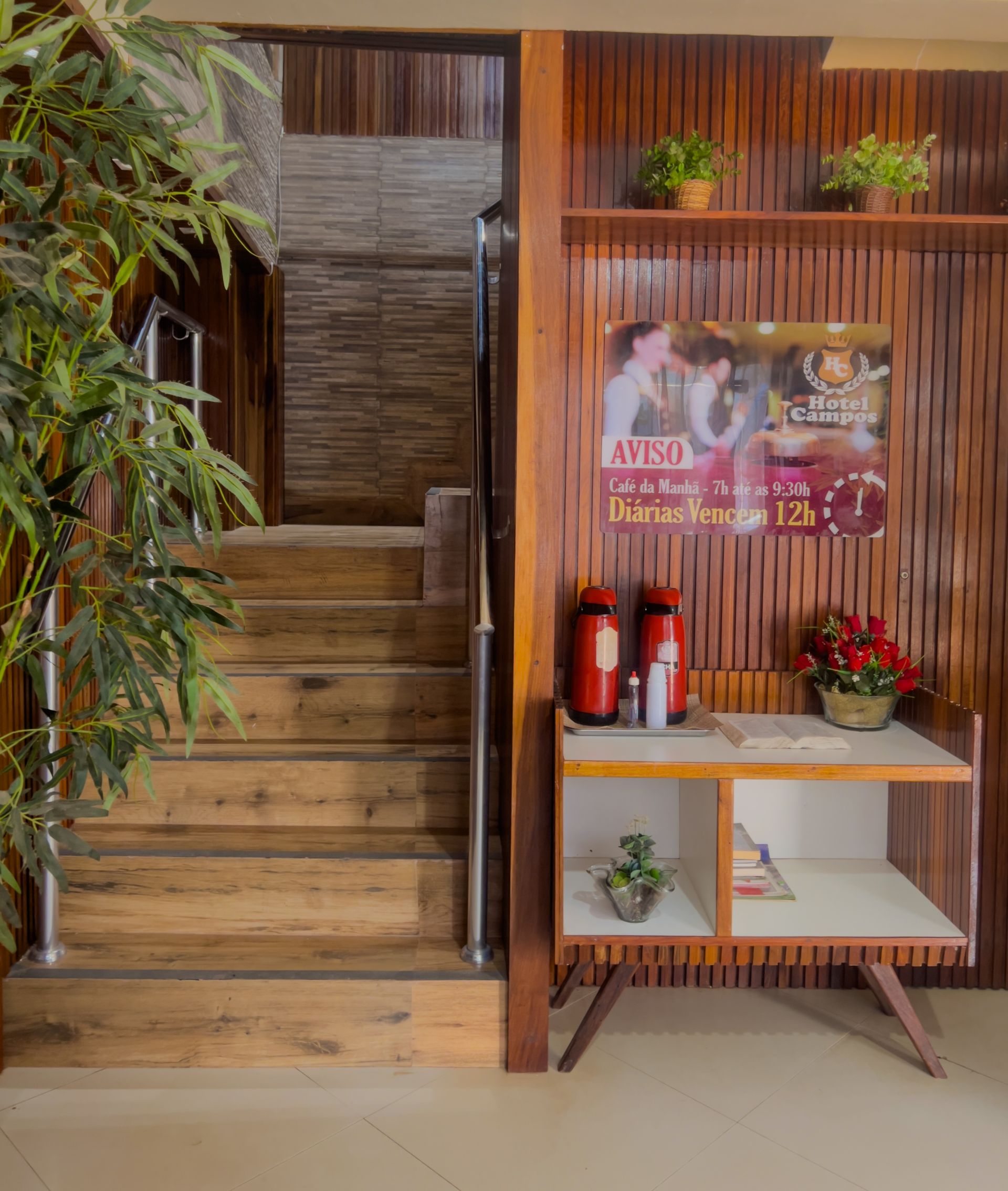 Hospedagem confortável e acolhedora, ideal para quem busca praticidade e boa localização. Oferecemos quartos amplos, limpos e bem equipados, atendimento atencioso e um ambiente tranquilo para descansar. Seja a trabalho ou lazer, o Hotel Campos é a escolha certa para uma estadia agradável.
